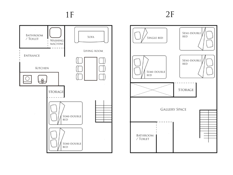 展示作品Exhibited Artwork 作品名: 陰陽阿吽〇一 作家名:南出直之制作作年 2020年メディア: アクリル絵具、金箔、銀箔、木 概 要Facilities キッチン 冷蔵庫/電子レンジ/IHクッキングヒーター/電気ケトル/包丁/まな板/フライパン/グラス/コーヒーカップ/箸/スプーン/フォーク/ナイフ/栓抜き/ワインオープナー/キッチンペーパー 最大定員 13名 (基本料金で4名まで)※ベッド6台、ソファーベッド、追加マットレスセット チェックイン・チェックアウト チェックイン 15:00〜20:00 / チェックアウト 11:00 インターネット環境 WiFi (無線LAN) 駐車場 屋外駐車場2台分(無料・建物前) 自転車 宿泊人数分 ※チェックイン前後の利用はできません。 アメニティ バスタオル/フェイスタオル/シャンプー/コンディショナー/ボディソープ/歯ブラシ/ボディスポンジ/ハンドソープ キッチン 冷蔵庫/電子レンジ/IHクッキングヒーター/電気ケトル/包丁/まな板/フライパン/グラス/コーヒーカップ/箸/スプーン/フォーク/ナイフ/栓抜き/ワインオープナー/キッチンペーパー サービス お茶・珈琲 Maximum capacity 13 people capacity6 beds plus sofa bed / extra matress Check in Check out Check-in 15: 00-20: 00 / Check-out 11:00 Internet environment WiFi (wireless LAN) Parking Lot 2 free parking lot bicycle For the number of guests * Cannot be used before or after check-in. Amenities Bath towel / face towel / shampoo / conditioner / body soap / toothbrush / body sponge / hand soap kitchen Refrigerator / Microwave / IH cooking heater / Electric kettle / Kitchen knife / Cutting board / Frying pan / Glass / Coffee cup / Chopsticks / Spoon / Fork / Knife / Bottle opener / Wine opener / Kitchen paper service Tea / coffee 駐車場 ・施設に隣接した無料駐車場を1台分ご用意しています。・路幅が狭いので進入に注意が必要です。 レンタサイクル ・施設内に無料レンタル自転車をご用意しています。チェックイン前、チェックアウト後のご利用はできませんのでご注意ください。 Parking Lot ・ We have a free parking lot adjacent to the facility for one car. The road width is narrow, so be careful when entering.・ Please note that there is no coin parking nearby. Bicycle rental ・ Free rental bicycles are available on site. Please note that it cannot be used before check-in or after check-out. 予約する | BOOK NOW Facebook Instagram Twitter