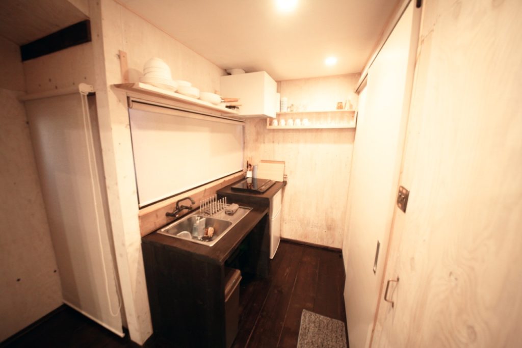 Refrigerator / Microwave / IH cooking heater / Electric kettle / Kitchen knife / Cutting board / Frying pan / Glass / Coffee cup / Chopsticks / Spoon / Fork / Knife / Bottle opener / Wine opener / Kitchen paper